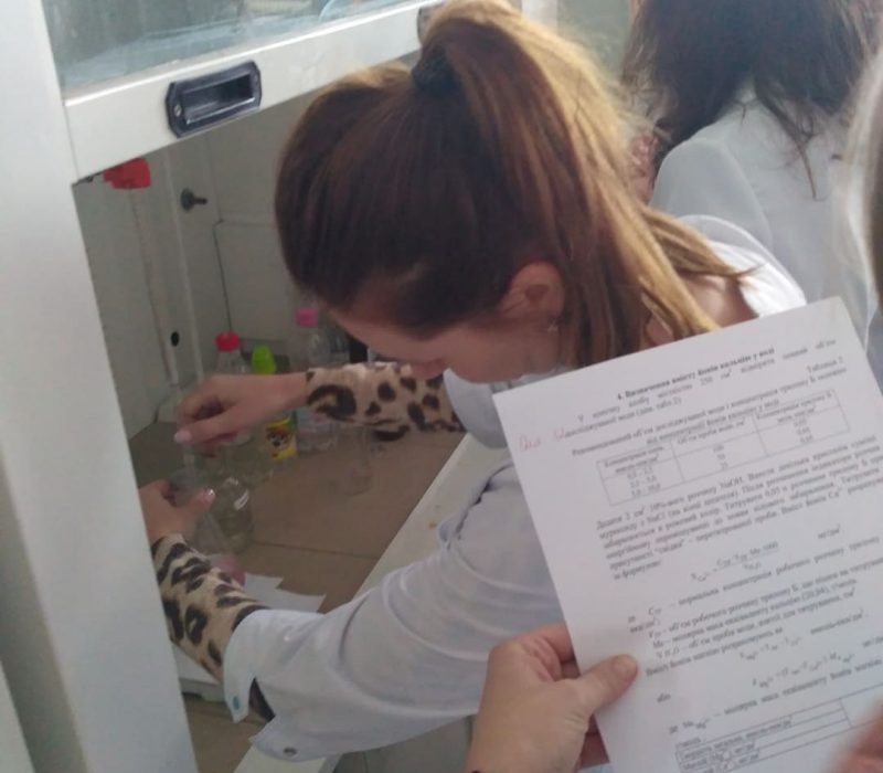 Практичне заняття на тему: “Визначення основних показників якості питної води” проводили доценти Ольга Кузишин та Liliya Bazyuk за допомогою зав. лабораторіями Ірина Малахова та зав. складом прекурсорів Ірина Русин.