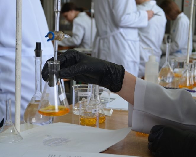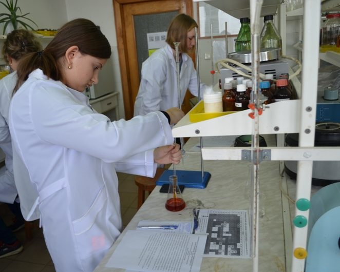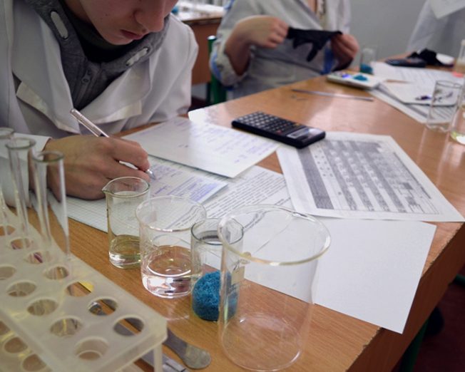 Зокрема, для восьмикласників було запропоновано виконати хімічні перетворення та приготувати розчини. Учні 9-х класів проводили якісний аналіз, в якому речовини ідентифікують або класифікують на основі їх хімічних або фізичних властивостей, таких, як хімічна реакційна здатність, розчинність, молекулярна вага, точка плавлення, тощо. Учні 10-11-х класів виконували титраметричний аналіз, а саме вимірювали об’єм розчину реактиву відомої концентрації, що витрачається на реакцію з розчином речовини, концентрація якої визначається. Учні разом із членами журі працювали у чотирьох лабораторіях кафедри хімії середовища та хімічної освіти.