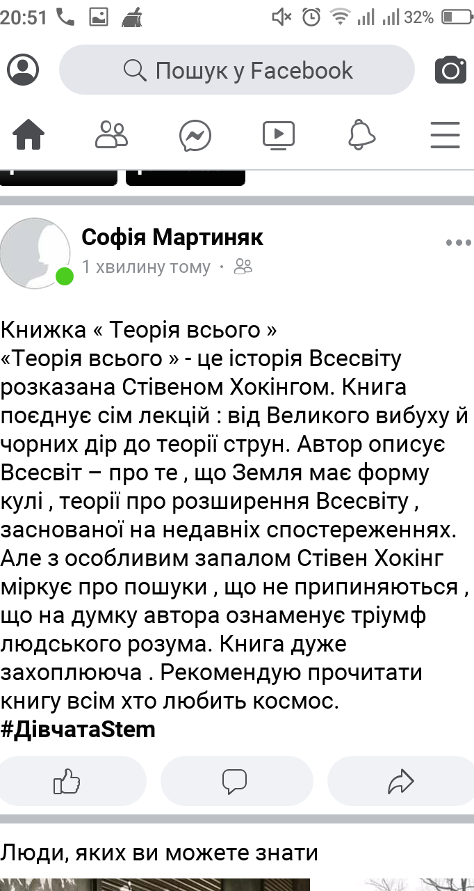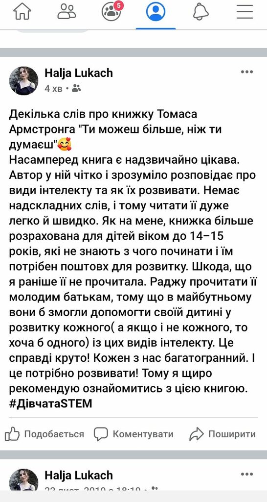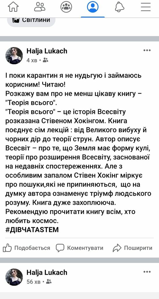 Наші дівчатаSTEM з групи СОХ-11 на цьому тижні, окрім виконання завдань дистанційного навчання, долучились до Book челенджу. Протягом тижня читали книжки по саморозвитку, та публікували свої відгуки та враження у соцмережах. Ось скріни дописів, що опублікували студентки у ФБ з хештегом дівчатаSTEM.