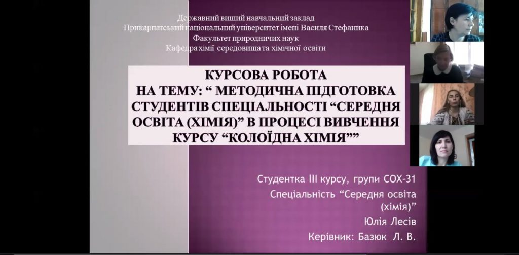На кафедрі хімії середовища та хімічної освіти відбувся захист курсових робіт студентів і студенток групи СОХ-41 спеціальності «Середня освіта (Хімія)»