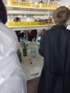 Аналітичну частину досліджень учні виконували в лабораторіях кафедри хімії середовища та хімічної освіти. Тут учасники ознайомилися з лабораторними методами оцінки якості води, навчилися інтерпретувати результати аналізів та зрозуміли, як наукові дані використовуються для оцінки екологічного стану міських водойм. Допомагали учням в роботі студенти групи СОХ-21 та викладачі кафедри.