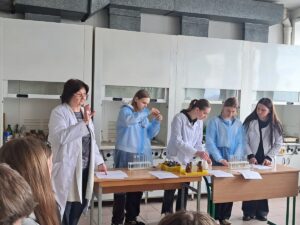 Темою заняття стали «Білки» — одна з ключових складових живих організмів. Учні виконували лабораторні роботи, спрямовані на виявлення та дослідження властивостей білків, ознайомилися з якісними реакціями та особливостями їх перебігу.