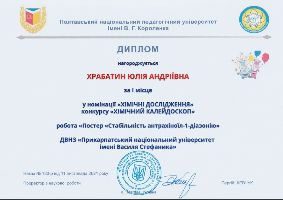 Students of the Department of Environmental Chemistry and Chemical Education of Vasyl Stefanyk Precarpathian National University took part in the competition “Chemical Kaleidoscope”, organized by the Department of Chemistry and Methods of Teaching Chemistry of Poltava National Pedagogical University named read more