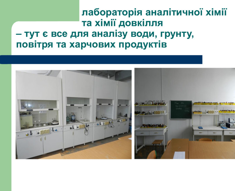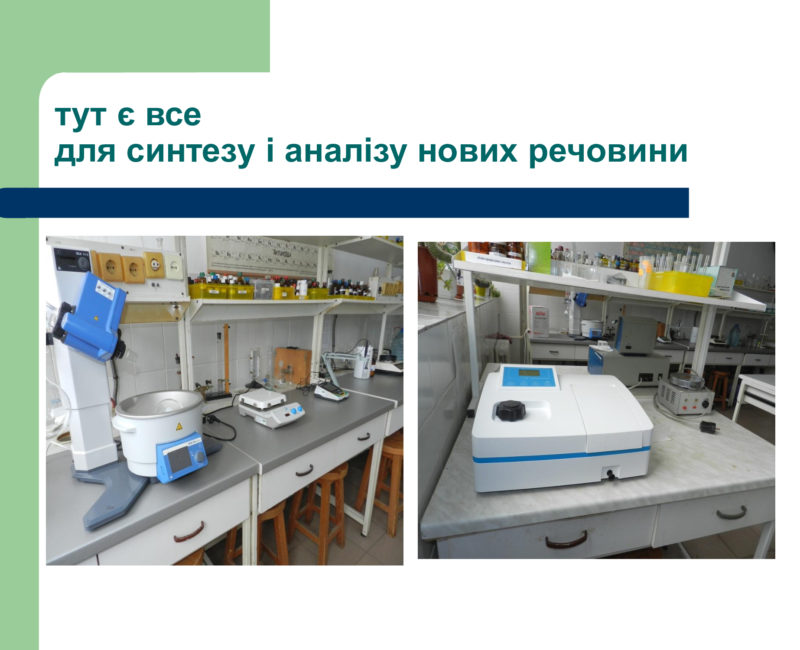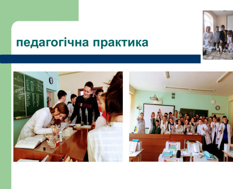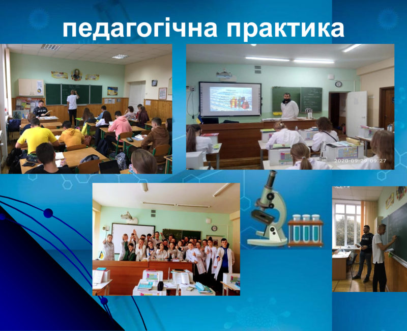 - студенти мають можливість виконувати науково-дослідну роботу у галузі сучасних методик та технологій навчання хімії, синтезу, аналізу структури і властивостей речовин, моніторингу та оцінки стану навколишнього середовища під керівництвом досвідчених викладачів університету.