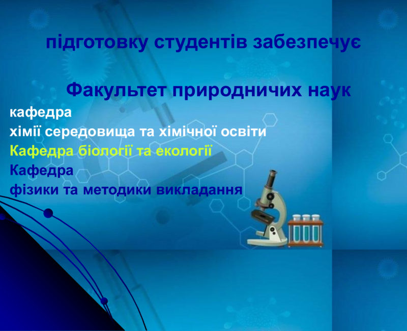 Студенти даної спеціальності матимуть змогу здобути нові знання та удосконалити свої вміння і навички з трьох природничих наук (фізики, хімії та біології), а також оволодіти методикою викладання нового інтегрованого курсу – природознавство (природничі науки), що читатиметься учням 10-12-х класів для непрофільних (не природничих) напрямів.