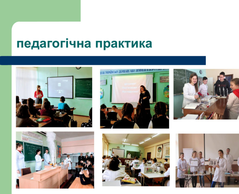 - педагогічна практика у ліцеях, гімназіях міста та області;