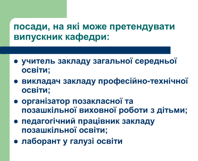 - Працювати в вищих та середніх навчальних закладах – університетах, академіях, інститутах, технікумах, середніх школах, тощо;